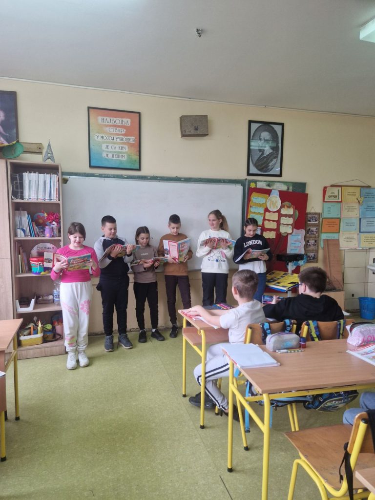 Поводом Националног дана књиге,28.2.2026.године, по осми пут школска библиотека се укључила у акцију ,,Читајмо гласно“, на предлог Друштва школских библиотекара. ,,Читало се гласно“ са ученицима у школској библиотеци, читаоници и учионицама. Подстакнута је љубав према читању, матерњем језику и култури уопште. После читања подељене су мисли, утисци и осећања, јер разговор о прочитаном продубљује доживљај.